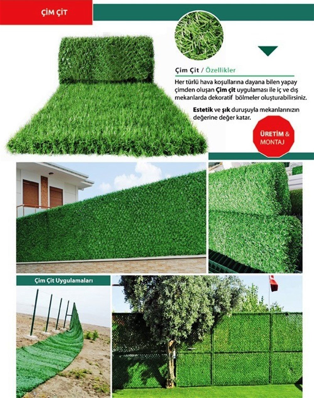 Lawn Fences for Decorative Purposes It is a fence system that prioritizes both visual and safety. Decoracite or lawn grass plastic, carpet, boxwood, leaf fence products are not, strengthened against the sun's rays are produced from special PVC. UV protection .Decoracite and grass are produced with stainless, galvanized wires that have undergone many treatments. Decoracite and lawns do not catch fire. Grass Fence offers a more aesthetic appearance as well as density. Çimçit is especially for security and decorative purposes. The braided wires do not have the appearance of cold metal but also offer safety.